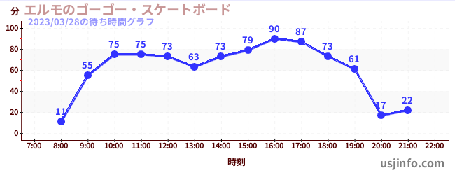 • エルモのゴーゴー・スケートボード$B$N(B2023年03月28日の待ち時間