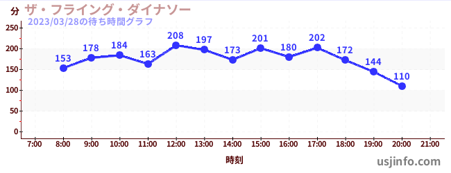 • ザ・フライング・ダイナソー$B$N(B2023年03月28日の待ち時間