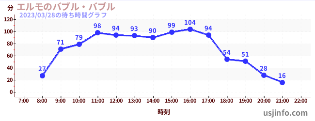 • エルモのバブル・バブル$B$N(B2023年03月28日の待ち時間