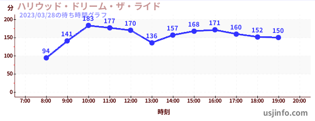 • ハリウッド・ドリーム・ザ・ライド$B$N(B2023年03月28日の待ち時間
