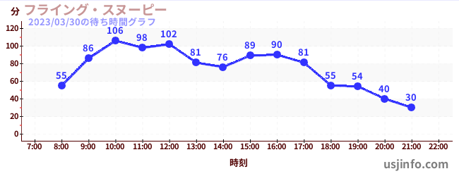 • フライング・スヌーピー$B$N(B2023年03月30日の待ち時間