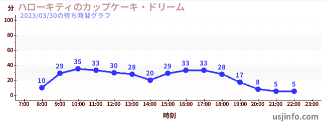 • ハローキティのカップケーキ・ドリーム$B$N(B2023年03月30日の待ち時間