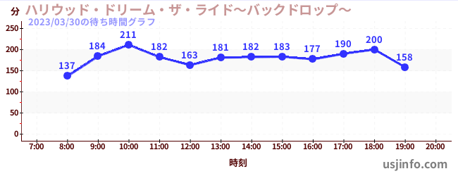• ハリウッド・ドリーム・ザ・ライド〜バックドロップ〜$B$N(B2023年03月30日の待ち時間