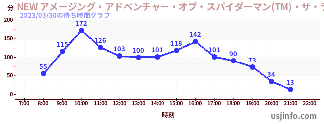 • NEW アメージング・アドベンチャー・オブ・スパイダーマン(TM)・ザ・ライド 4K3D$B$N(B2023年03月30日の待ち時間