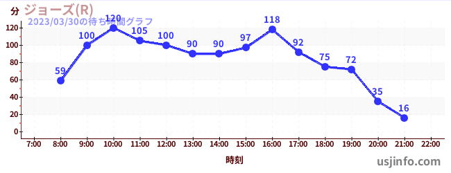 • ジョーズ(R)$B$N(B2023年03月30日の待ち時間