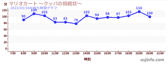 • マリオカート ~クッパの挑戦状~$B$N(B2023年03月30日の待ち時間