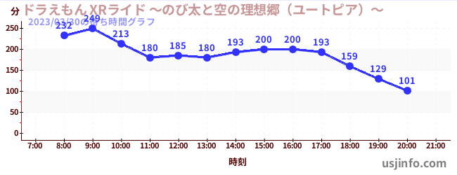 • ドラえもん XRライド ~のび太と空の理想郷(ユートピア)~$B$N(B2023年03月30日の待ち時間