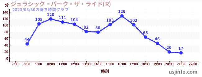• ジュラシック・パーク・ザ・ライド(R)$B$N(B2023年03月30日の待ち時間