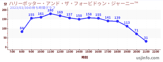 • ハリーポッター・アンド・ザ・フォービドゥン・ジャーニー™$B$N(B2023年03月30日の待ち時間