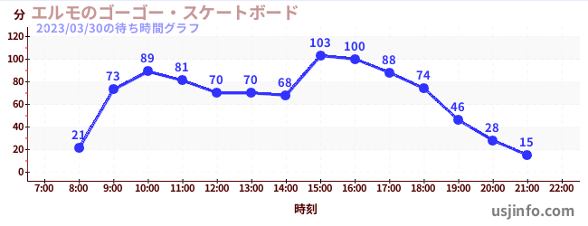 • エルモのゴーゴー・スケートボード$B$N(B2023年03月30日の待ち時間