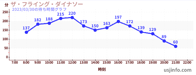 • ザ・フライング・ダイナソー$B$N(B2023年03月30日の待ち時間
