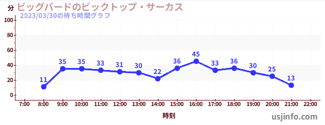 • ビッグバードのビックトップ・サーカス$B$N(B2023年03月30日の待ち時間
