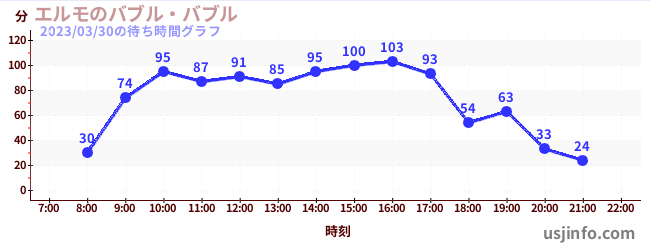 • エルモのバブル・バブル$B$N(B2023年03月30日の待ち時間