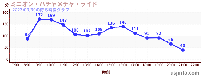• ミニオン・ハチャメチャ・ライド$B$N(B2023年03月30日の待ち時間