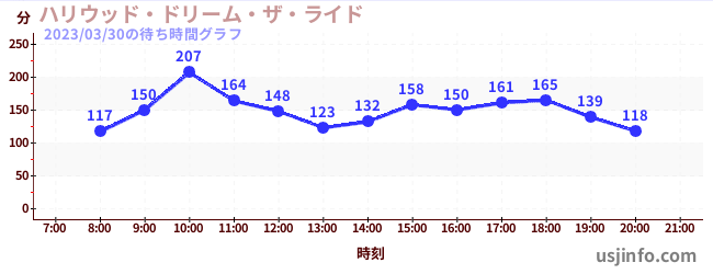 • ハリウッド・ドリーム・ザ・ライド$B$N(B2023年03月30日の待ち時間