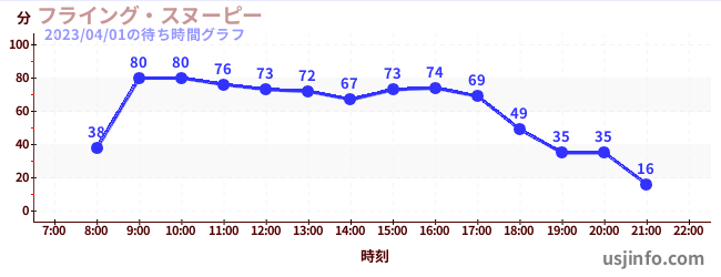 • フライング・スヌーピー$B$N(B2023年04月01日の待ち時間