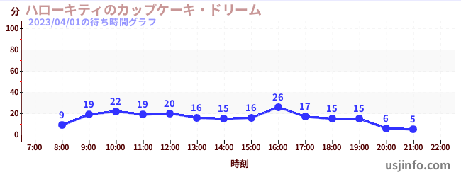 • ハローキティのカップケーキ・ドリーム$B$N(B2023年04月01日の待ち時間