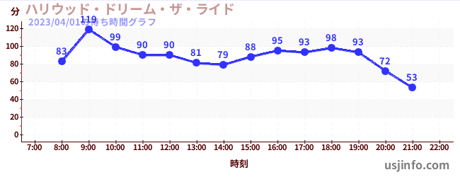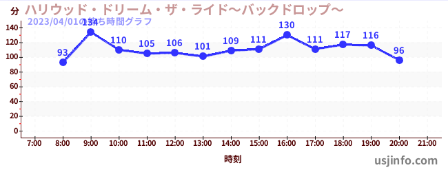 • ハリウッド・ドリーム・ザ・ライド〜バックドロップ〜$B$N(B2023年04月01日の待ち時間