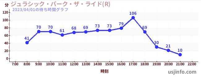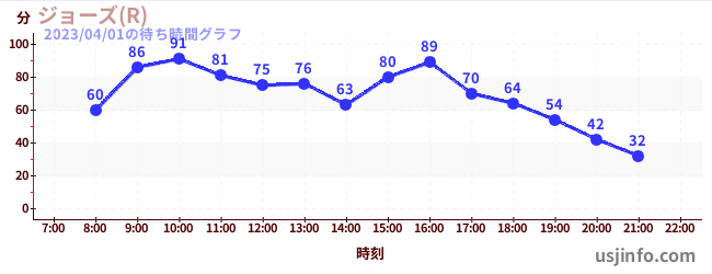 • ジョーズ(R)$B$N(B2023年04月01日の待ち時間