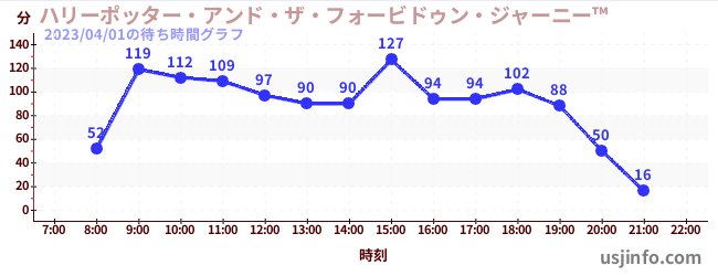• ハリーポッター・アンド・ザ・フォービドゥン・ジャーニー™$B$N(B2023年04月01日の待ち時間
