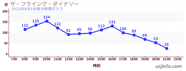 • ザ・フライング・ダイナソー$B$N(B2023年04月01日の待ち時間