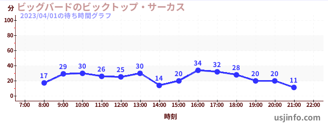 • ビッグバードのビックトップ・サーカス$B$N(B2023年04月01日の待ち時間