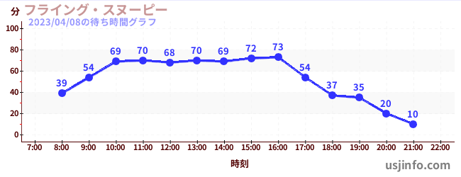 • フライング・スヌーピー$B$N(B2023年04月08日の待ち時間