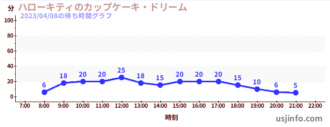 • ハローキティのカップケーキ・ドリーム$B$N(B2023年04月08日の待ち時間