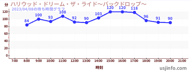• ハリウッド・ドリーム・ザ・ライド〜バックドロップ〜$B$N(B2023年04月08日の待ち時間