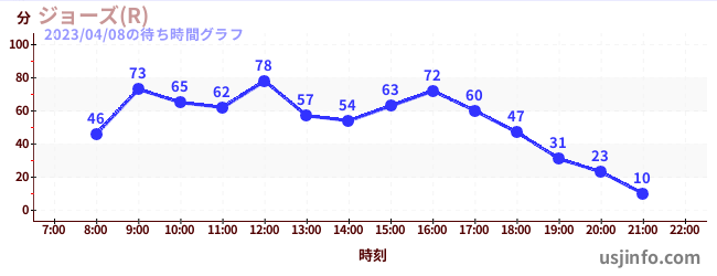 • ジョーズ(R)$B$N(B2023年04月08日の待ち時間