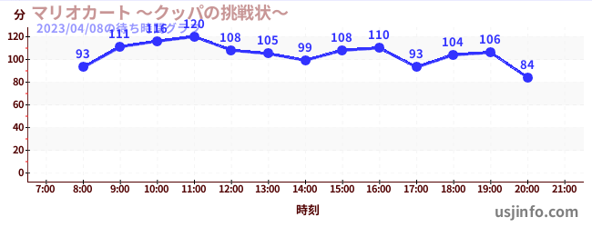 • マリオカート ~クッパの挑戦状~$B$N(B2023年04月08日の待ち時間