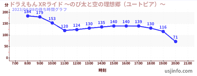• ドラえもん XRライド ~のび太と空の理想郷(ユートピア)~$B$N(B2023年04月08日の待ち時間