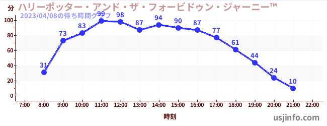 • ハリーポッター・アンド・ザ・フォービドゥン・ジャーニー™$B$N(B2023年04月08日の待ち時間