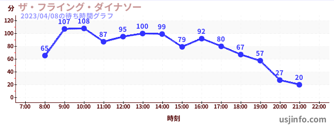 • ザ・フライング・ダイナソー$B$N(B2023年04月08日の待ち時間