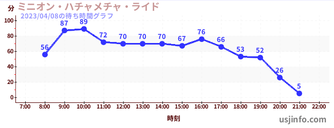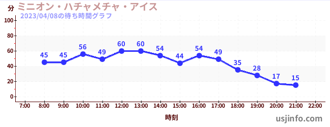 • ミニオン・ハチャメチャ・ライド$B$N(B2023年04月08日の待ち時間