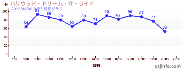 • ハリウッド・ドリーム・ザ・ライド$B$N(B2023年04月08日の待ち時間