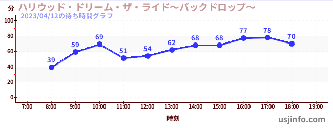 • ハリウッド・ドリーム・ザ・ライド〜バックドロップ〜$B$N(B2023年04月12日の待ち時間