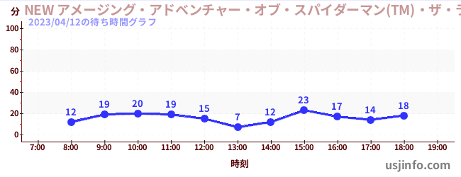 • NEW アメージング・アドベンチャー・オブ・スパイダーマン(TM)・ザ・ライド 4K3D$B$N(B2023年04月12日の待ち時間