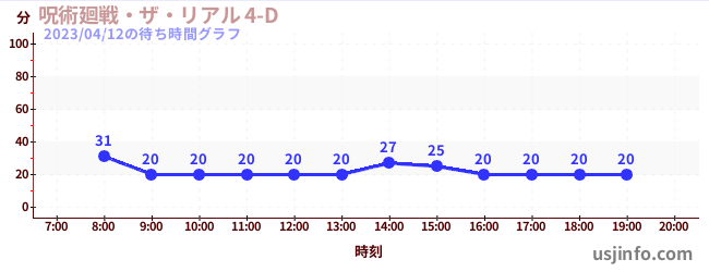 • 呪術廻戦・ザ・リアル 4-D$B$N(B2023年04月12日の待ち時間