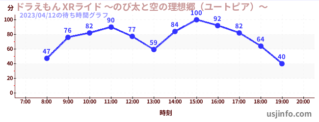 • ドラえもん XRライド ~のび太と空の理想郷(ユートピア)~$B$N(B2023年04月12日の待ち時間