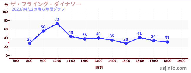 • ザ・フライング・ダイナソー$B$N(B2023年04月12日の待ち時間