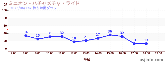 • ミニオン・ハチャメチャ・ライド$B$N(B2023年04月12日の待ち時間