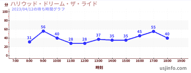 • ハリウッド・ドリーム・ザ・ライド$B$N(B2023年04月12日の待ち時間