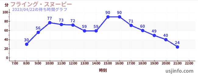• フライング・スヌーピー$B$N(B2023年04月22日の待ち時間