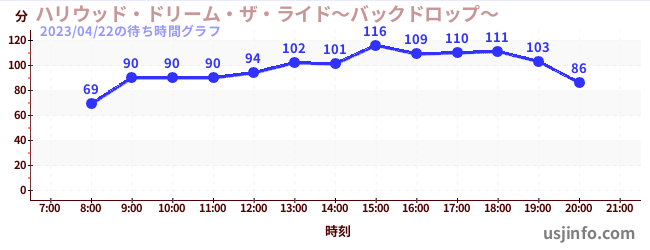 • ハリウッド・ドリーム・ザ・ライド〜バックドロップ〜$B$N(B2023年04月22日の待ち時間