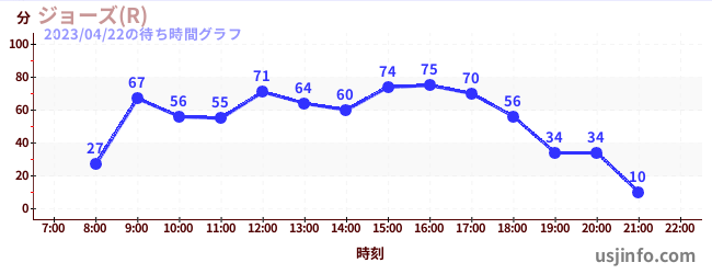 • ジョーズ(R)$B$N(B2023年04月22日の待ち時間