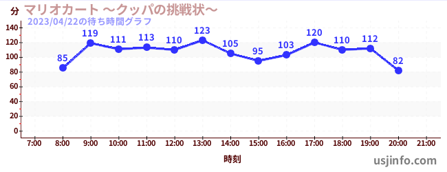 • マリオカート ~クッパの挑戦状~$B$N(B2023年04月22日の待ち時間