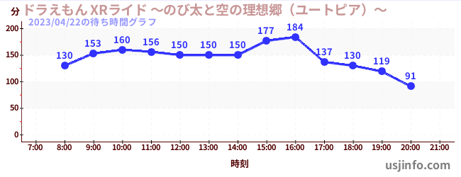 • ドラえもん XRライド ~のび太と空の理想郷(ユートピア)~$B$N(B2023年04月22日の待ち時間