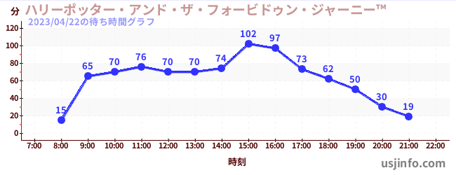 • ハリーポッター・アンド・ザ・フォービドゥン・ジャーニー™$B$N(B2023年04月22日の待ち時間