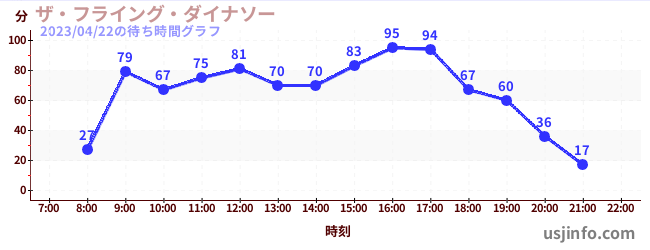 • ザ・フライング・ダイナソー$B$N(B2023年04月22日の待ち時間